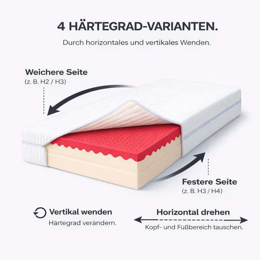 • 4 Härtegrade in einer Matratze – individuell anpassbar, ideal für alle Schlaftypen